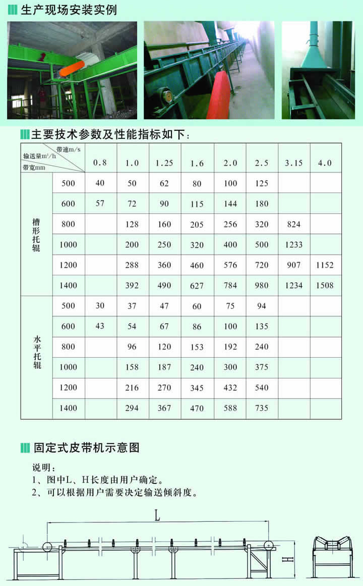 TDSG系列固定式皮帶輸送機運用于糧食、化工、冶金、礦工、煤炭、港口等部門,用來輸送散裝物料及成件物品。該設備具有輸送量大、結構簡單、維修方便、成本低、通用性強等優(yōu)點。該產(chǎn)品可在環(huán)境溫度-15℃到40℃的范圍內(nèi)使用,可輸送物料的溫度在50℃以下,松散密度為0.5~2.5t/m3。